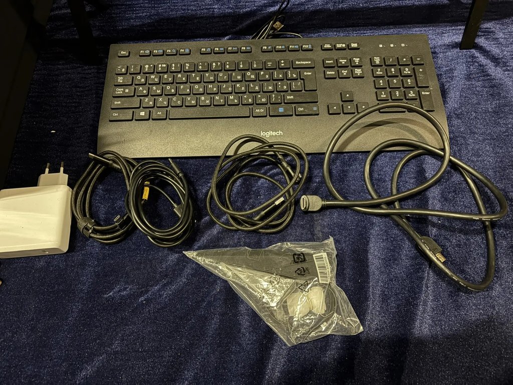 Упаковка вскрывалась. Оборудование использовалось. Есть вмятинки, царапины, сколы. В комплекте системный блок, монитор, клавиатура, кабели type c и hdmi , блок питания к монитору, очки, wi-fi антенна. Нет мыши и кабеля питания для системного блока.