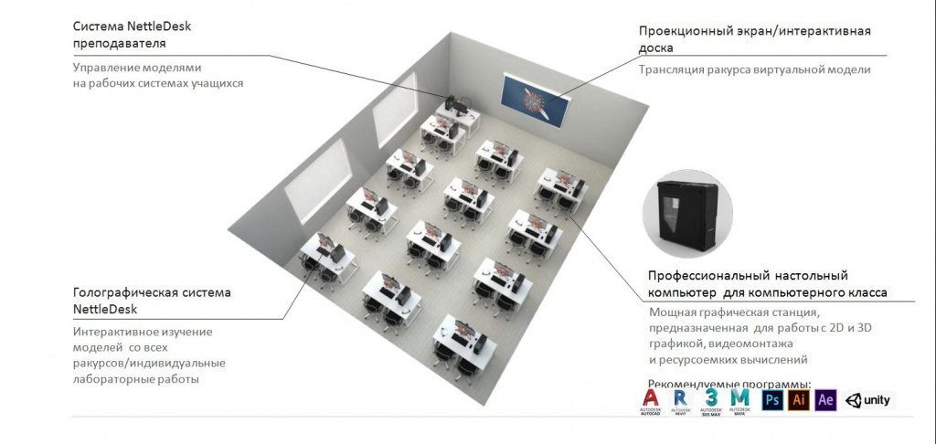 NettleDesk – мощная учебная станция для демонстрации голографических макетов и персональный компьютер способный работать с ресурсоемкими вычислительными программами.