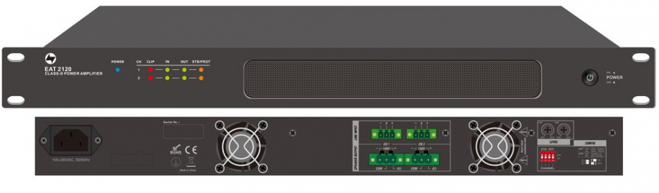 Номинальная выходная мощность Exell EAT2120 составляет 2×120 Вт, поэтому его можно использовать в качестве двухзонной системы фонового озвучивания с несколькими источниками при минимальных затратах. Универсальные выходы громкоговорителя с высоким сопротивлением 100 В и низким сопротивлением от 4 Ом позволяют использовать его как в трансляционных инсталляциях, так и при установке стереозвука.